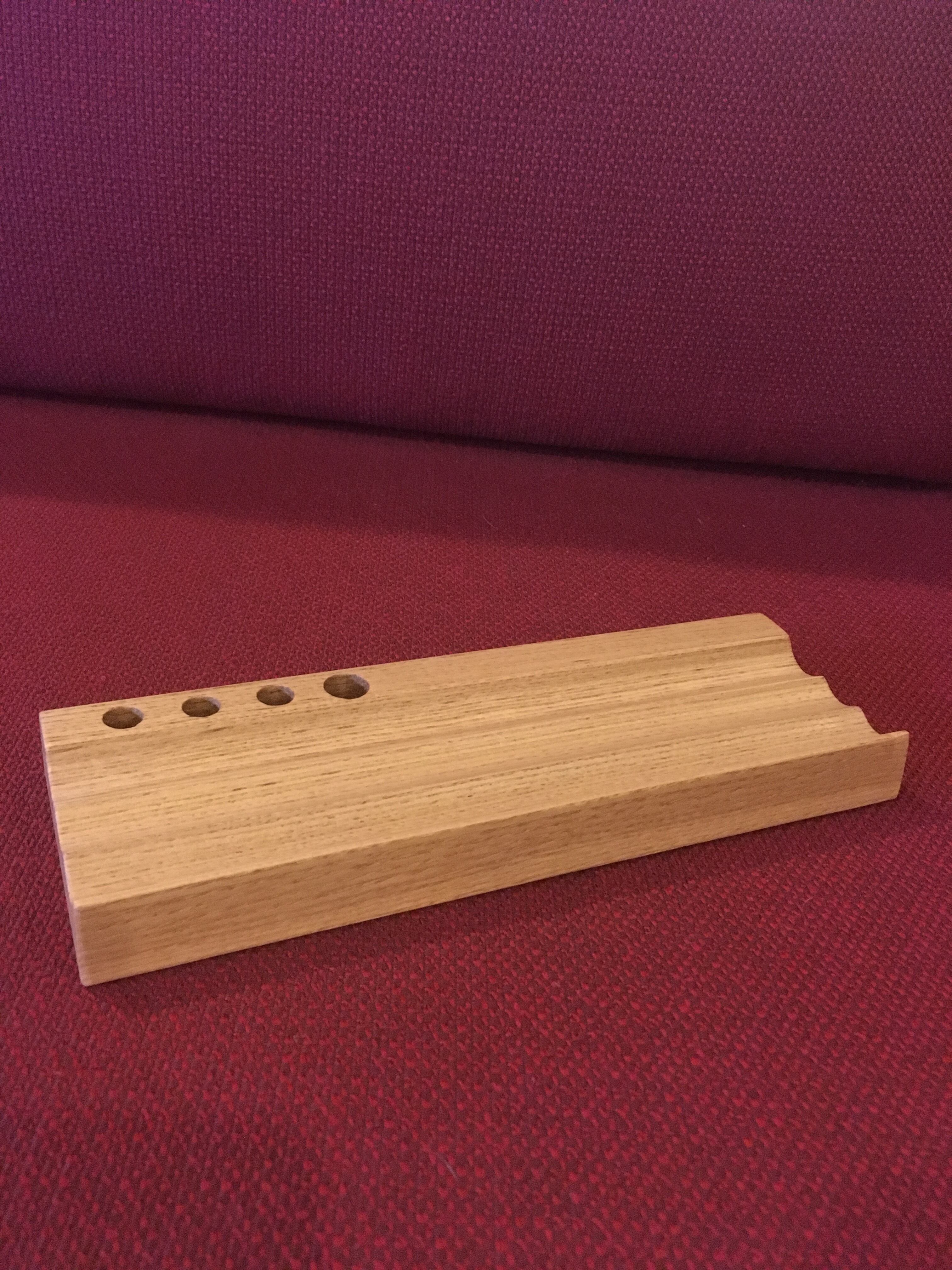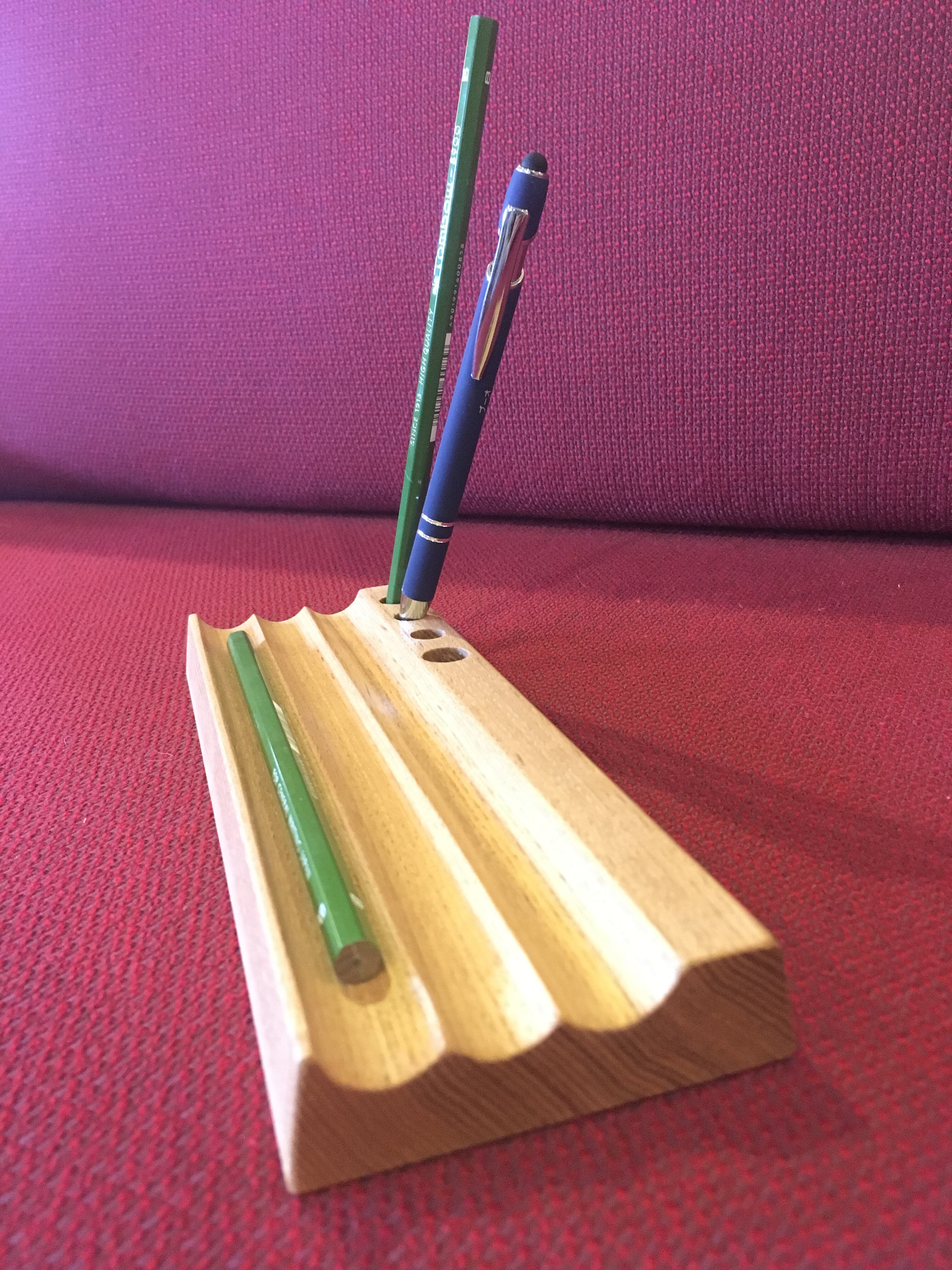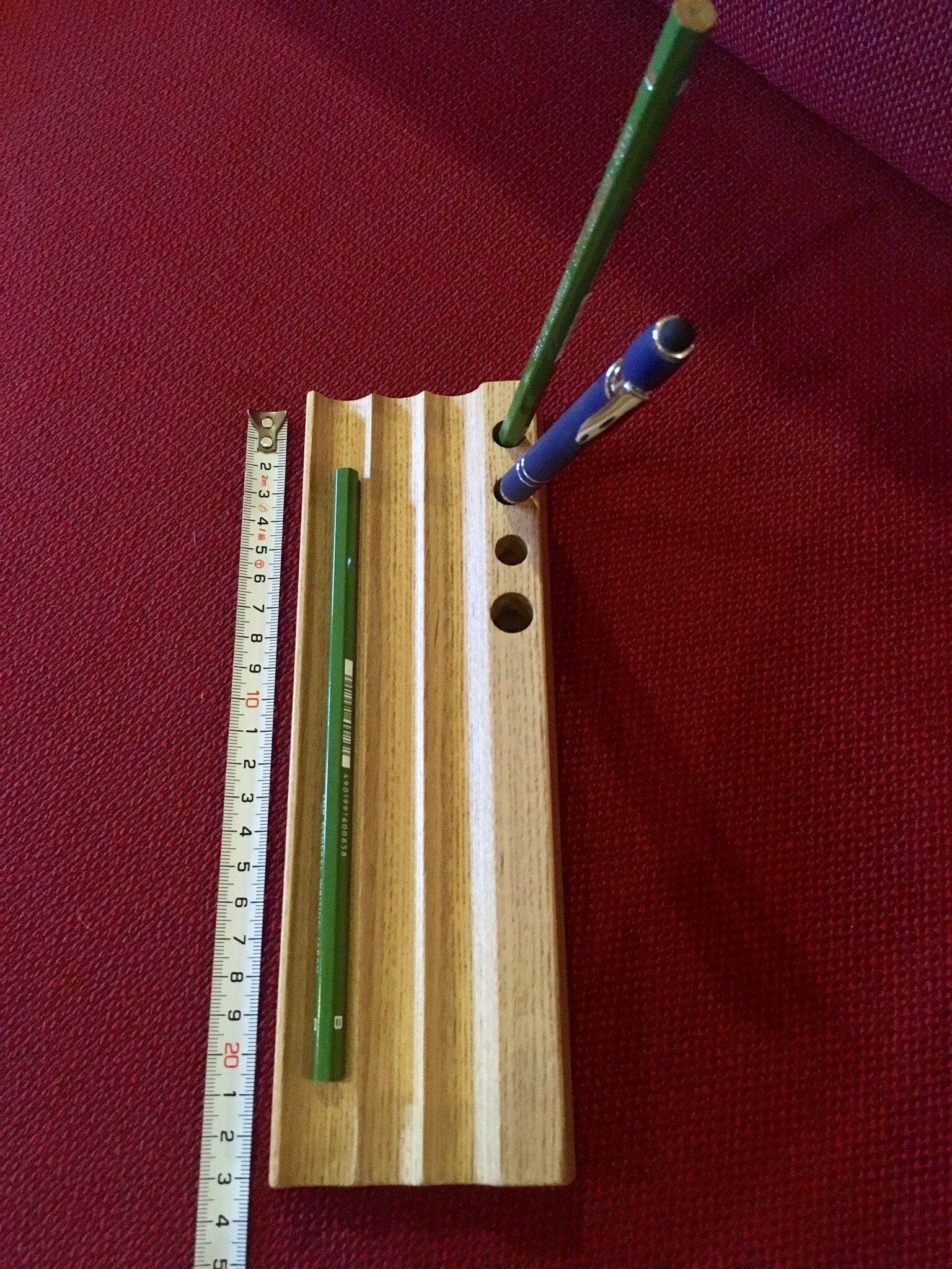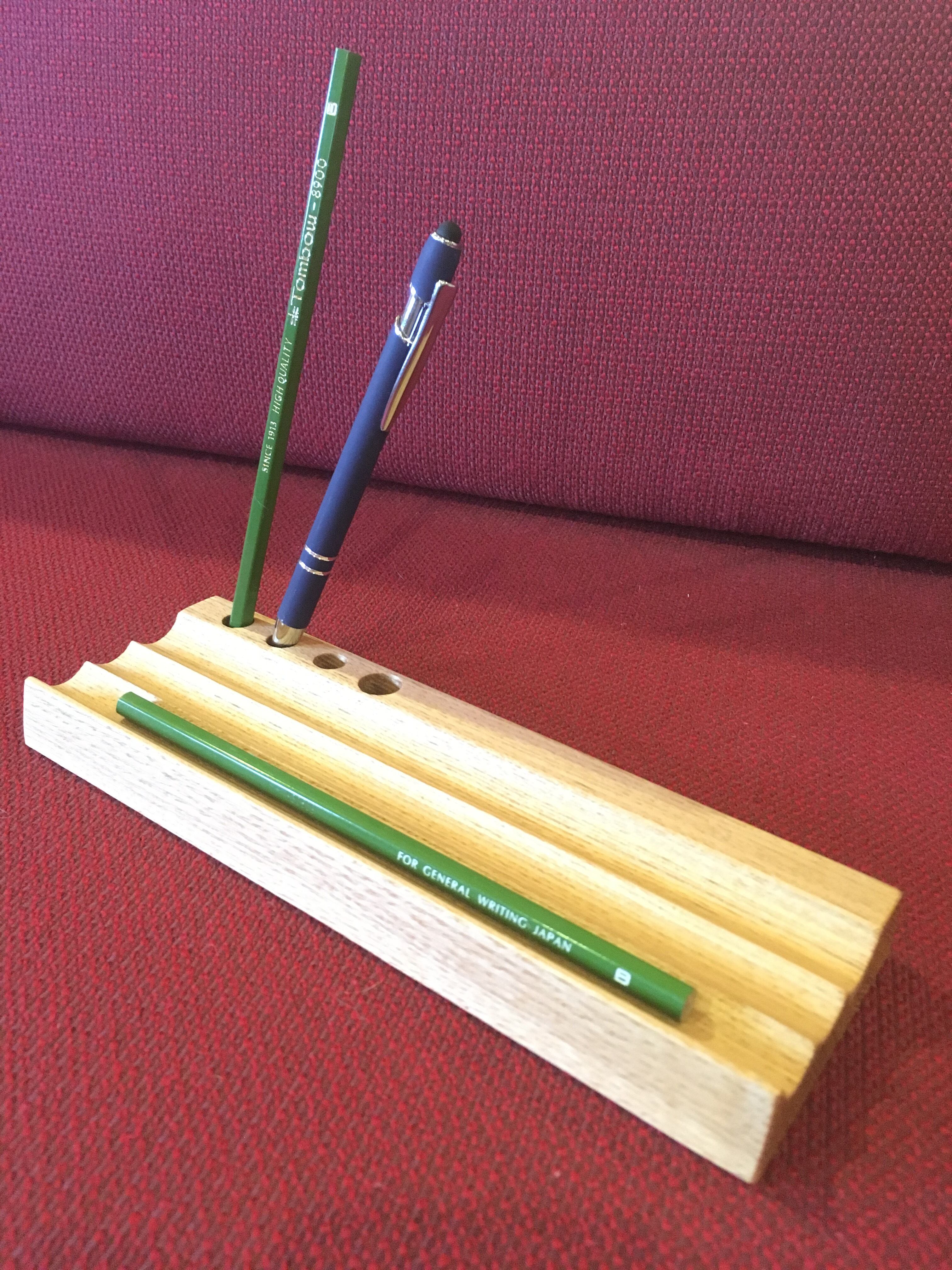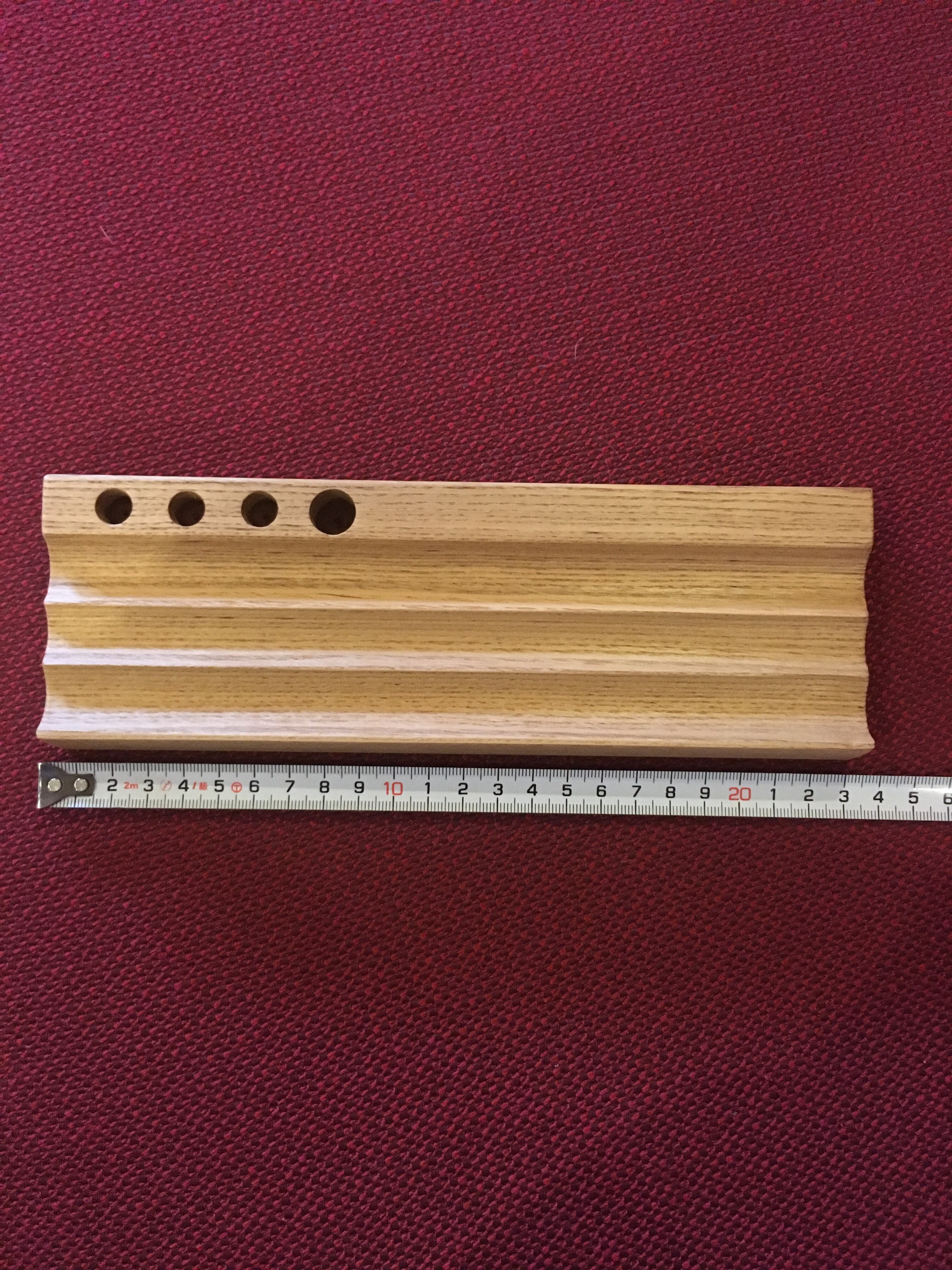 木のペントレーです。立てることも置くこともできます。デスクにあるとオシャレです!ヨコ23cm・タテ7cm
